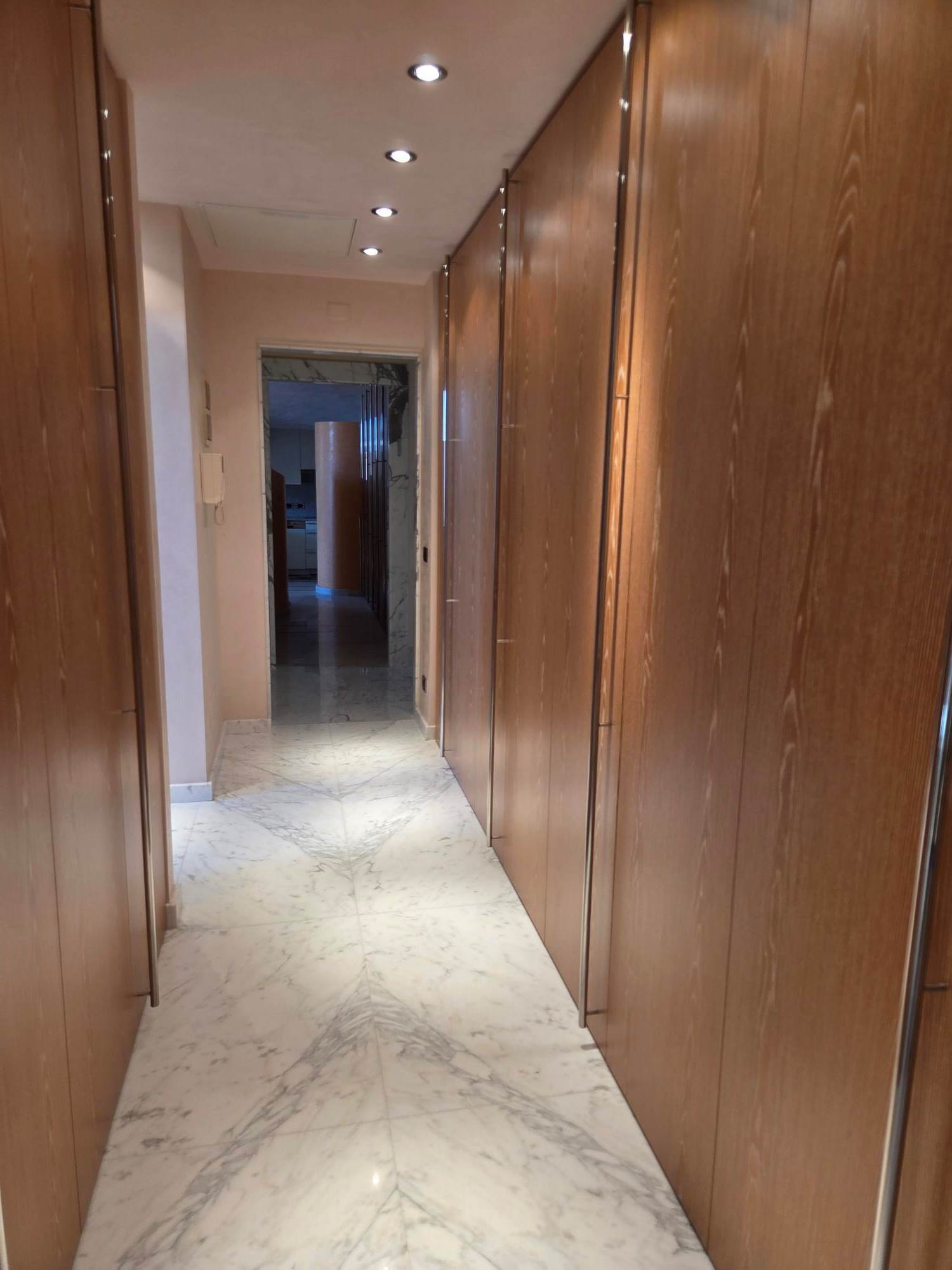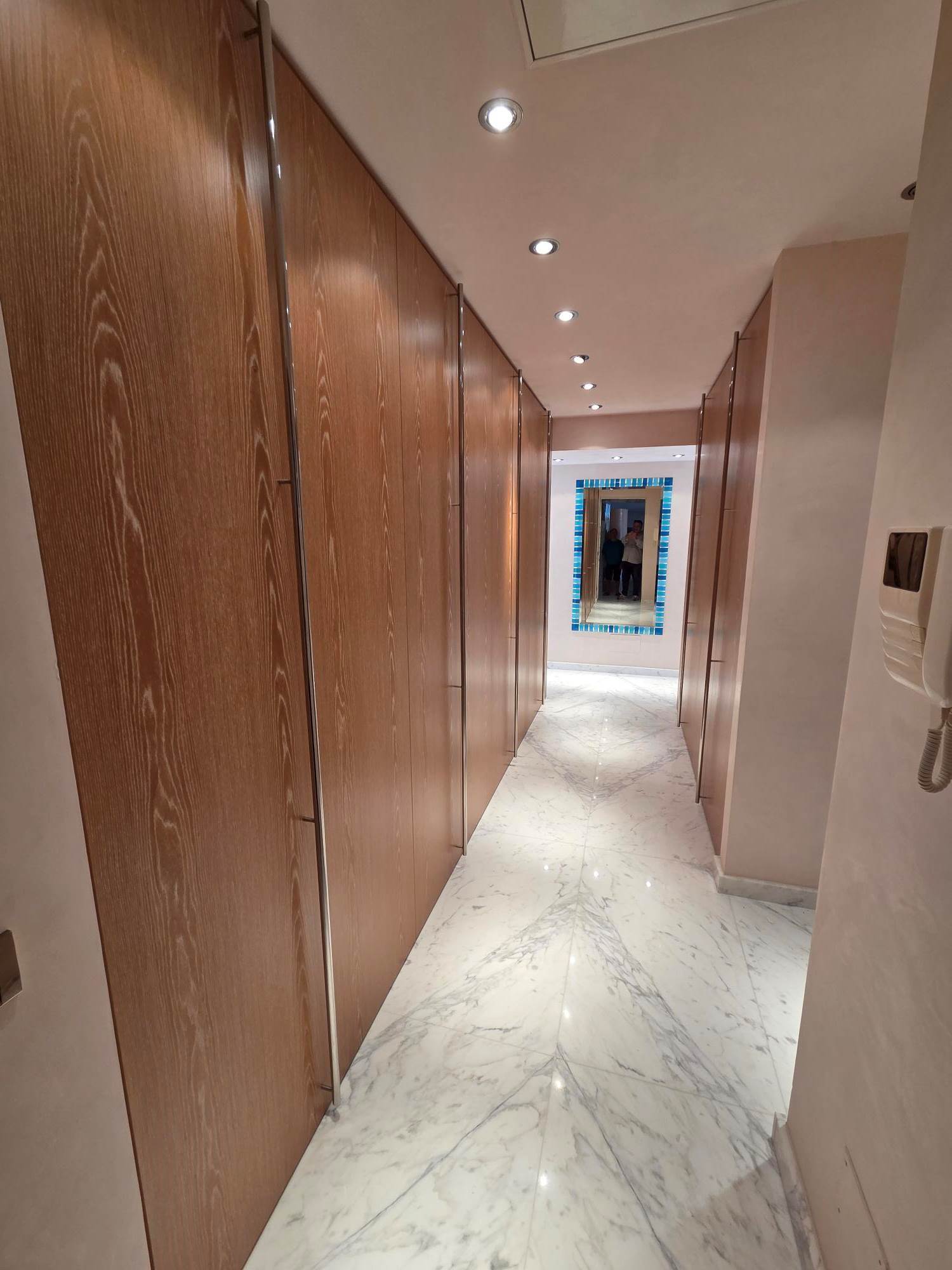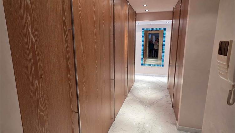 A private lift opens directly into the home, where a spacious double living room with dining area and designer open-plan kitchen flows seamlessly onto a panoramic terrace boasting breathtaking sea views. The property features 5 bedrooms (two of which are currently configured as a study and private gym), 4 stylish bathrooms, a laundry room, built-in corridor storage, and bespoke wardrobes and walk-in closets in the bedrooms.