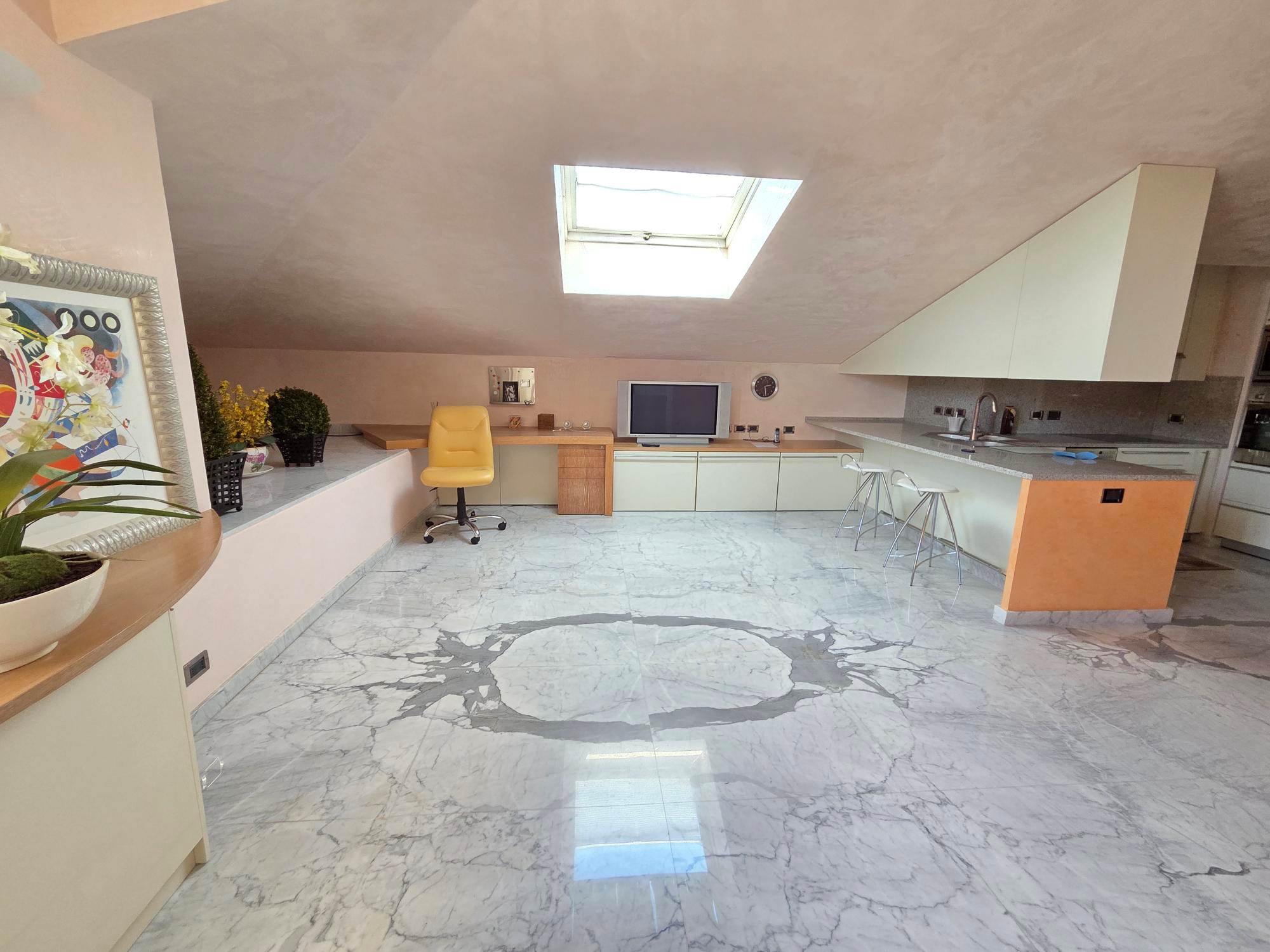 Located on the prestigious Via Romana, within an exclusive historic residence featuring concierge service and swimming pool, this remarkable 240 sqm penthouse with loft-style design offers the ultimate in elegance and comfort.