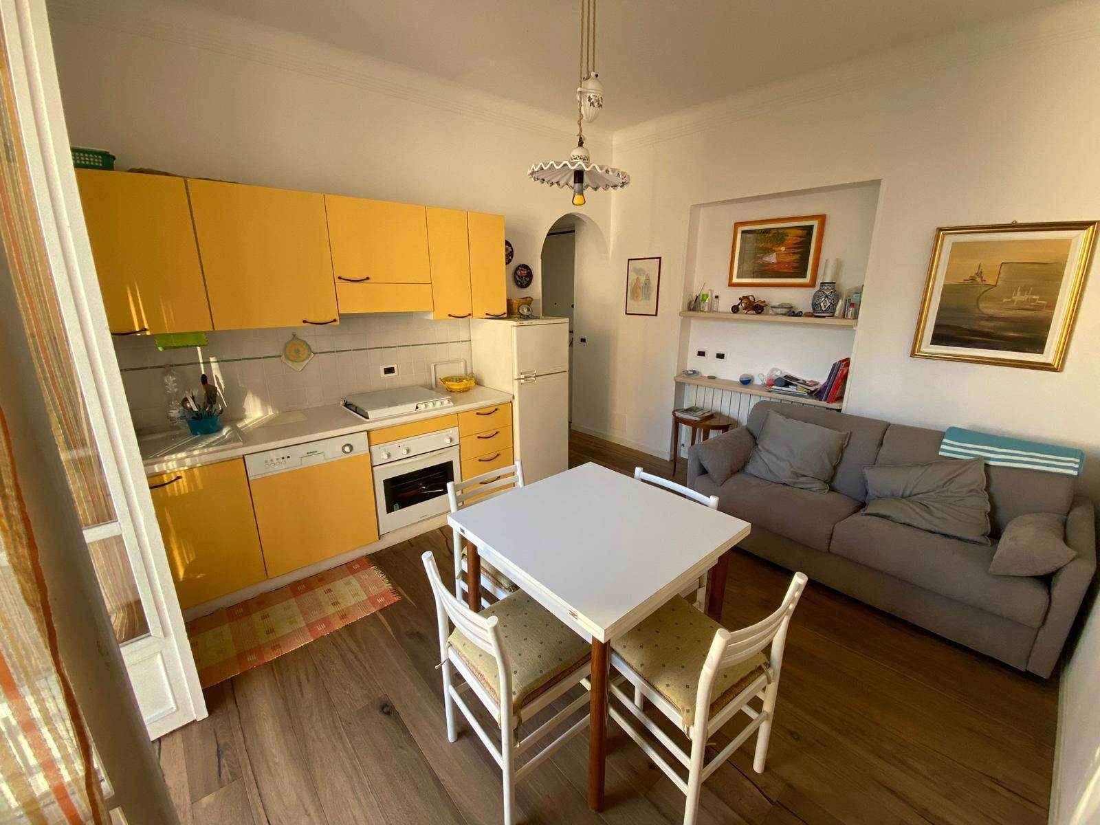 Discover this elegant one-bedroom apartment located in the heart of Bordighera, in a small, well-maintained building. Completely renovated, the apartment features a welcoming living area with kitchenette, a bright bedroom, and a modern bathroom. Its south-facing exposure offers a spectacular sea view, perfect for enjoying relaxing moments on the private balcony. Above the apartment there is a shared terrace of approximately 180 sqm.