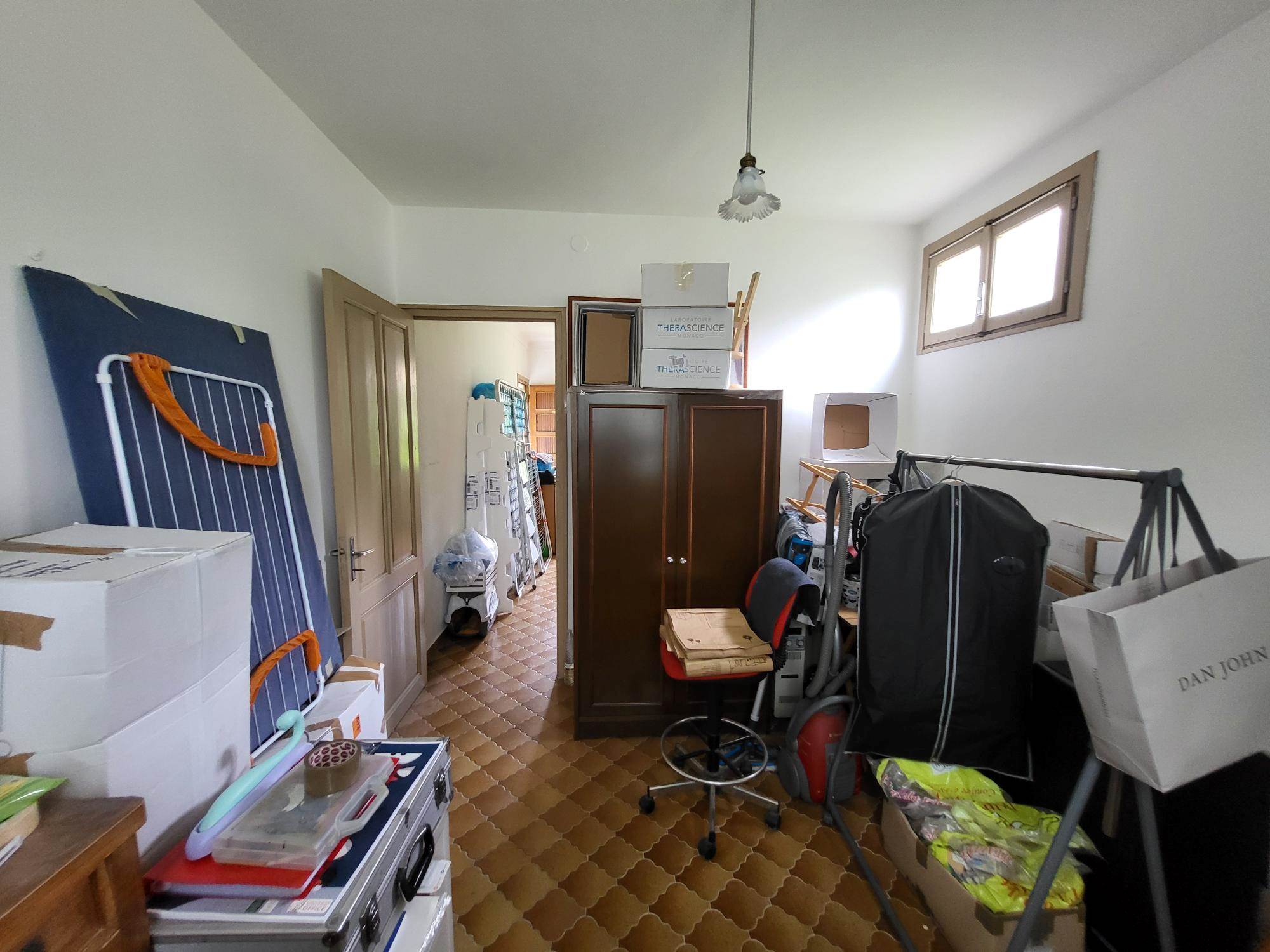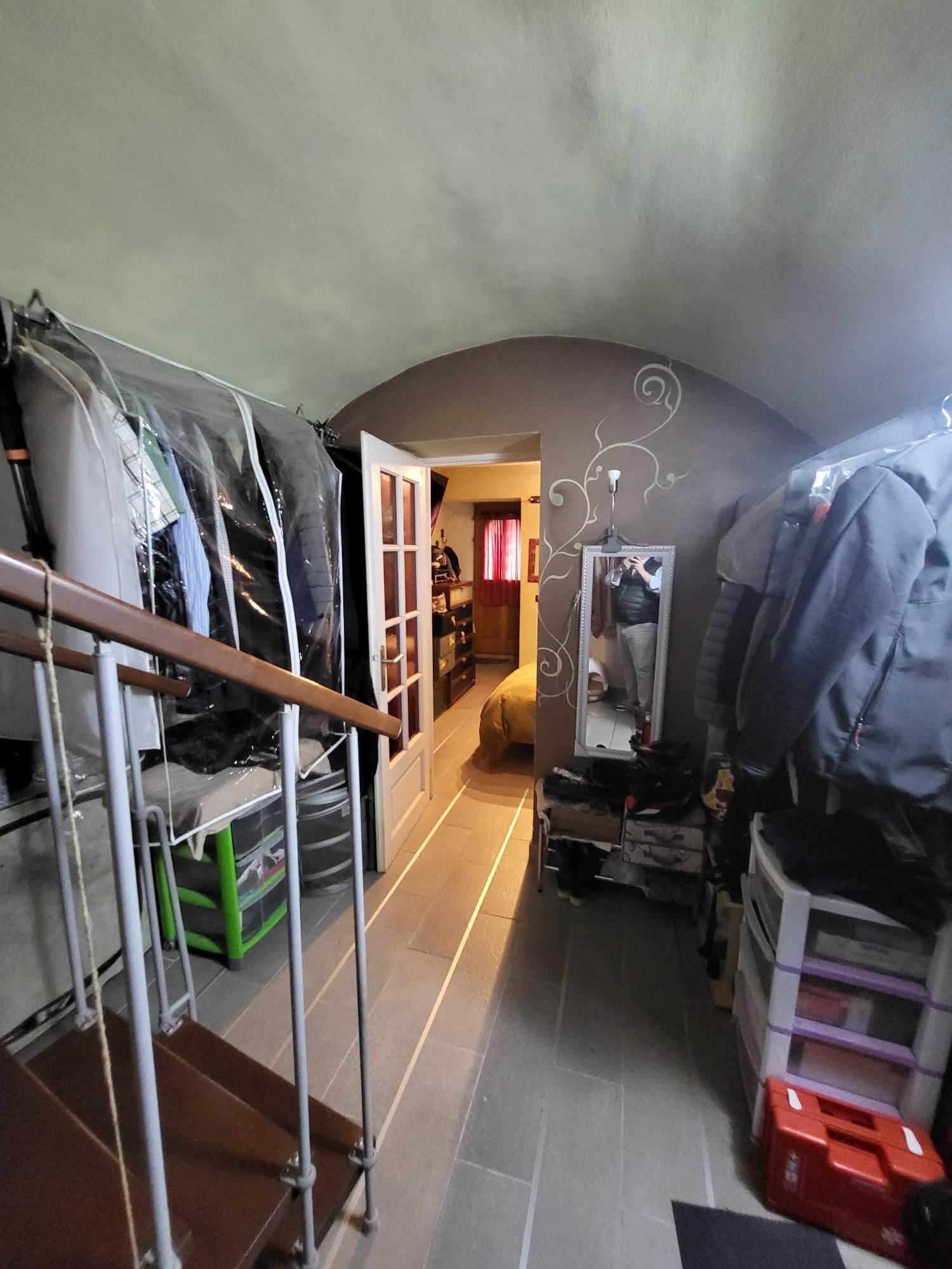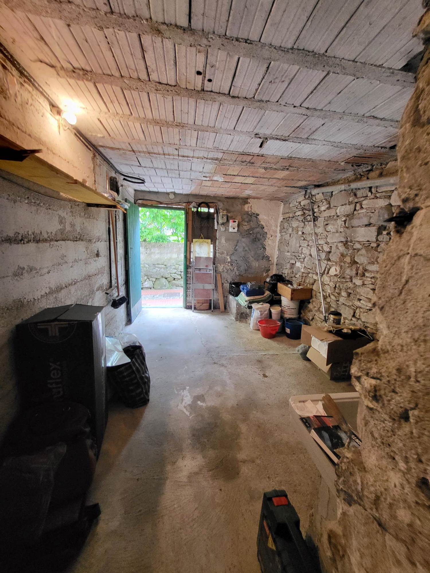 Attualmente la proprietà è composta da un bilocale con ingresso al 1° piano con un soggiorno e cucina e una camera con bagno e cabina armadi al piano terra con un altro bilocale da ristrutturare e unire al bilocale esistente e una grande cantina/tavernetta.