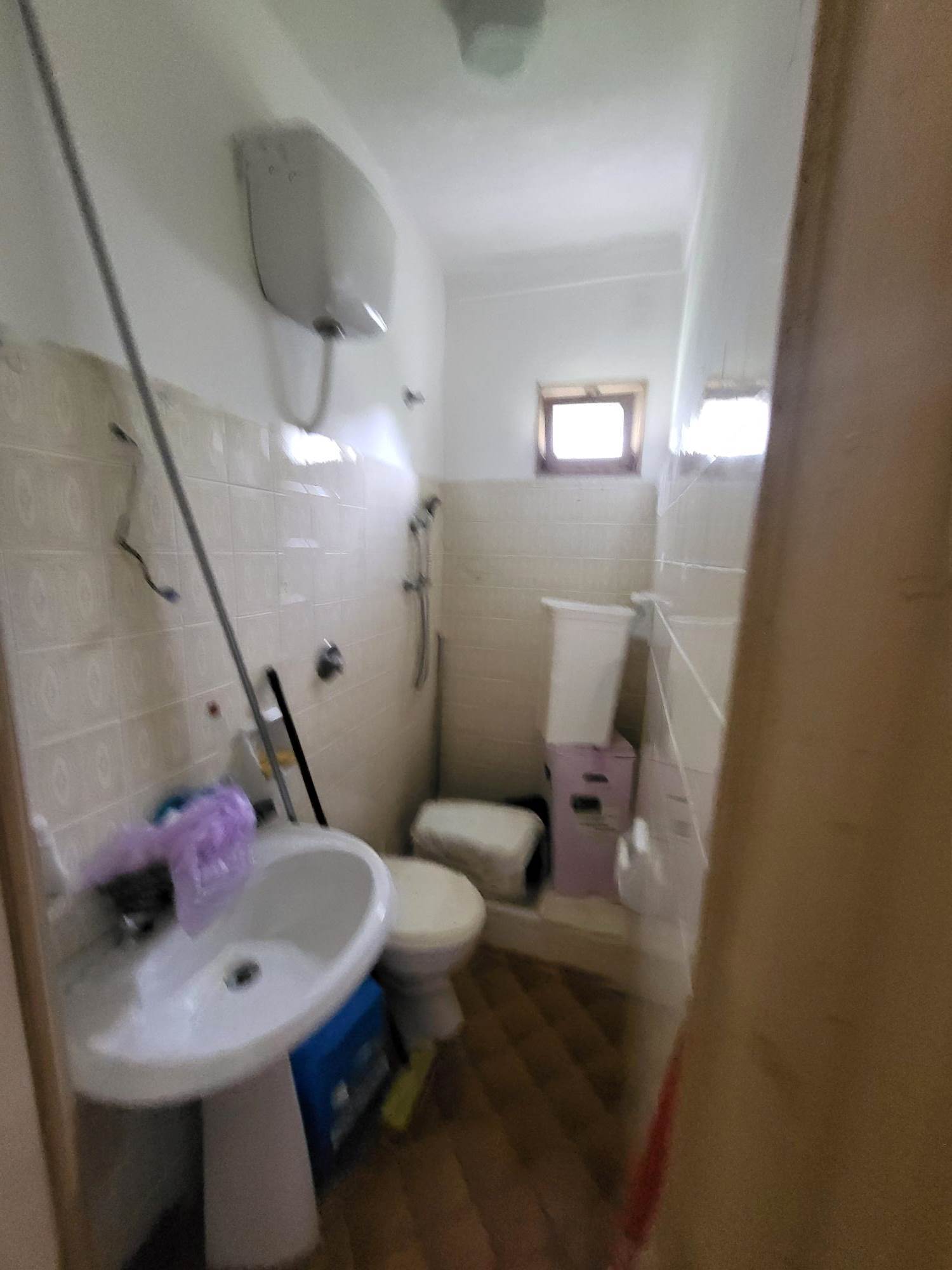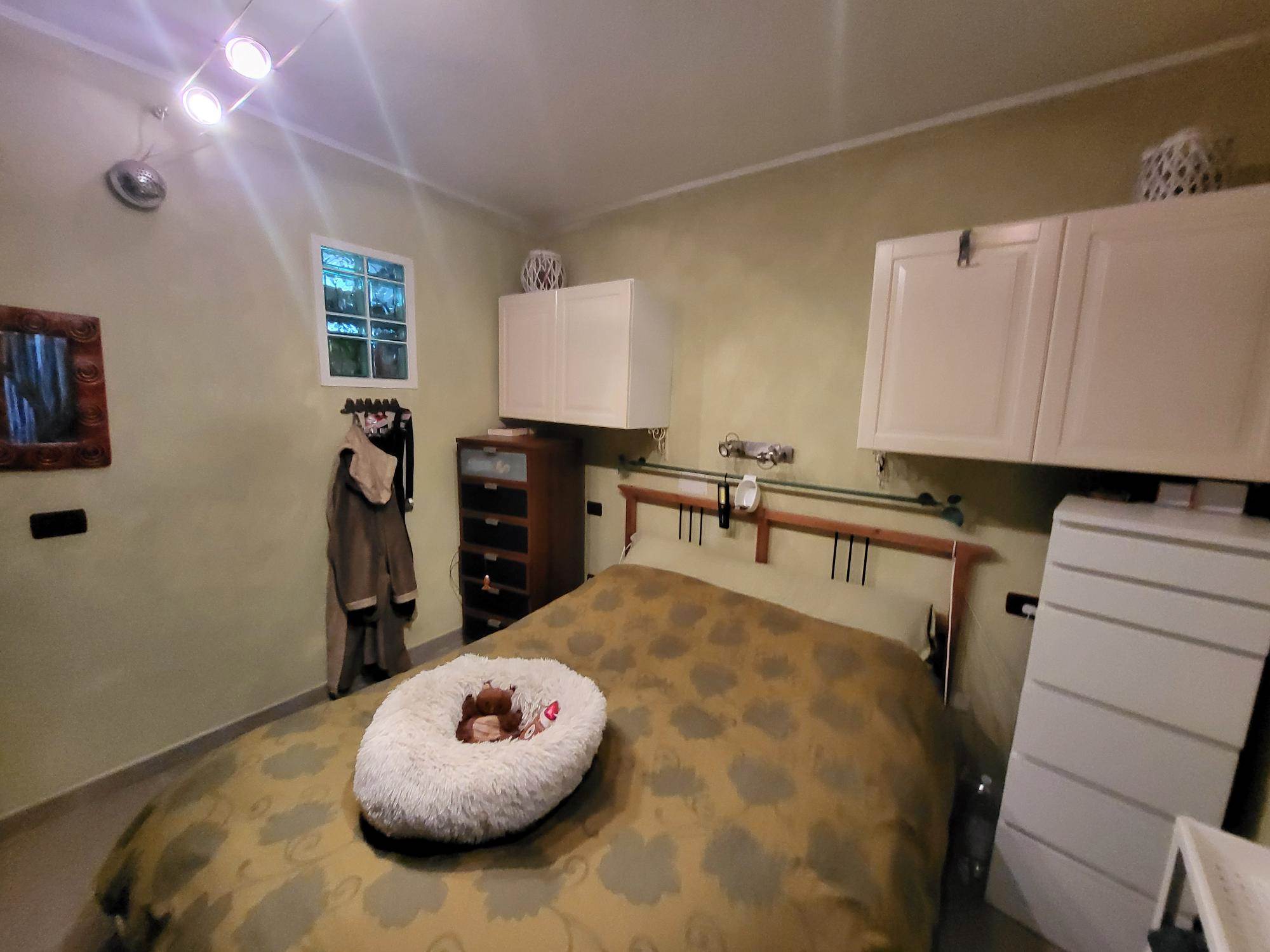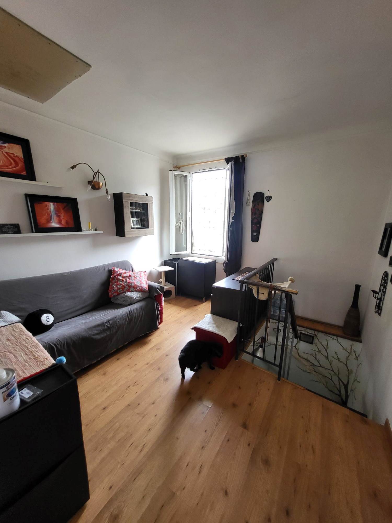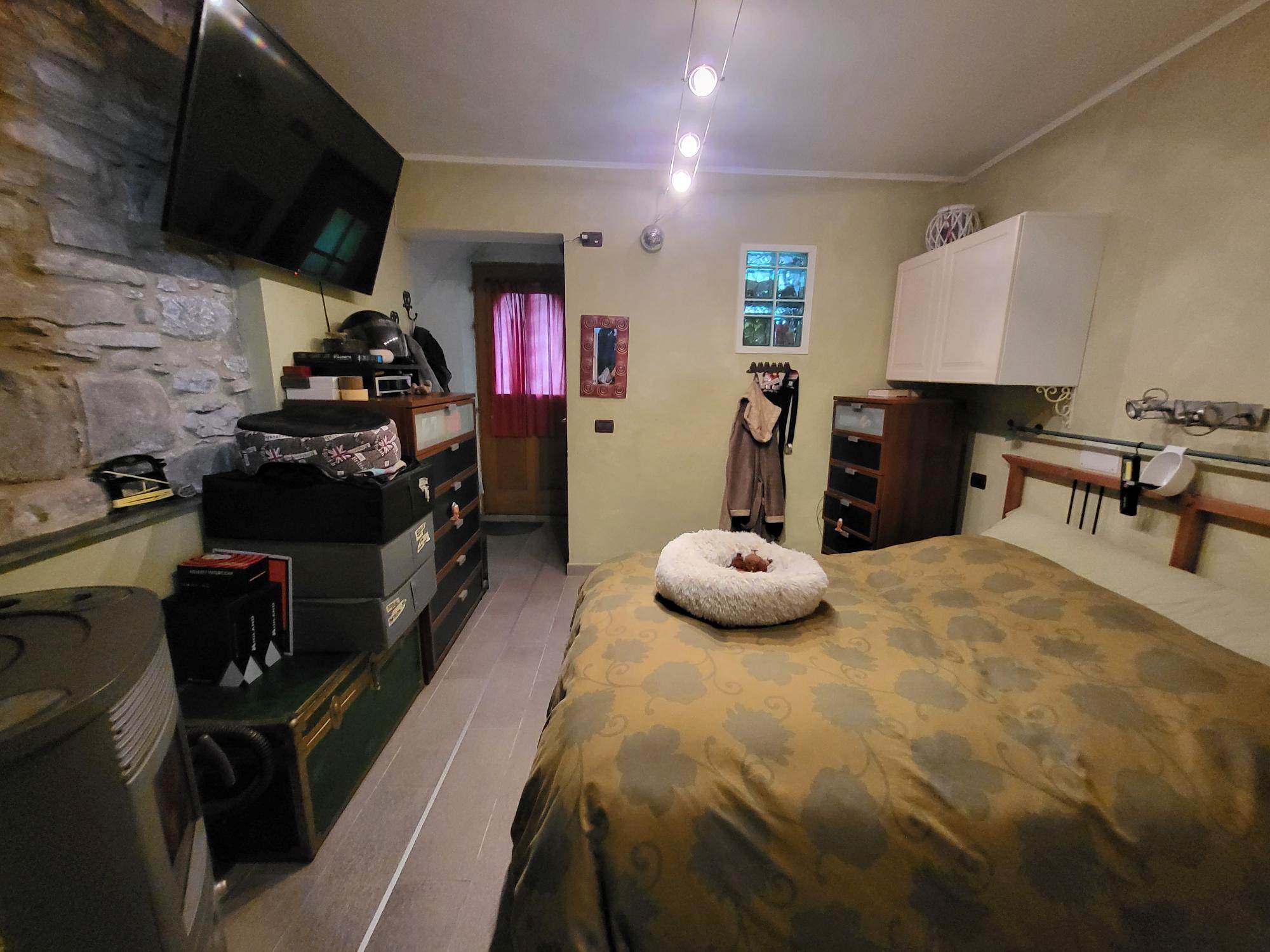 Attualmente la proprietà è composta da un bilocale con ingresso al 1° piano con un soggiorno e cucina e una camera con bagno e cabina armadi al piano terra con un altro bilocale da ristrutturare e unire al bilocale esistente e una grande cantina/tavernetta.
