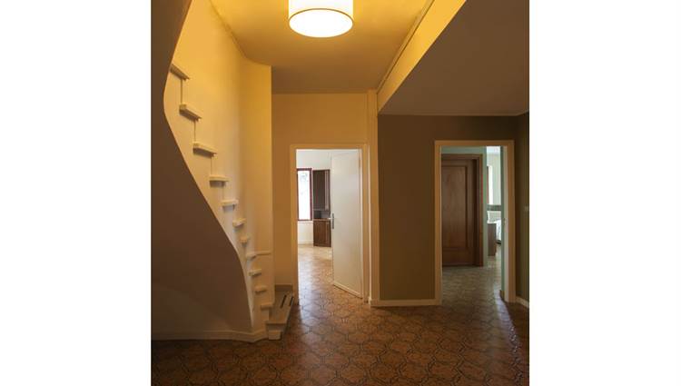 Il piano a livello strada è suddiviso in un grande ingresso, salone doppio, cucina abitabile, ampio studio, camera, bagno, terrazzo di 30 mq con vista mare, in prossimità della cucina.