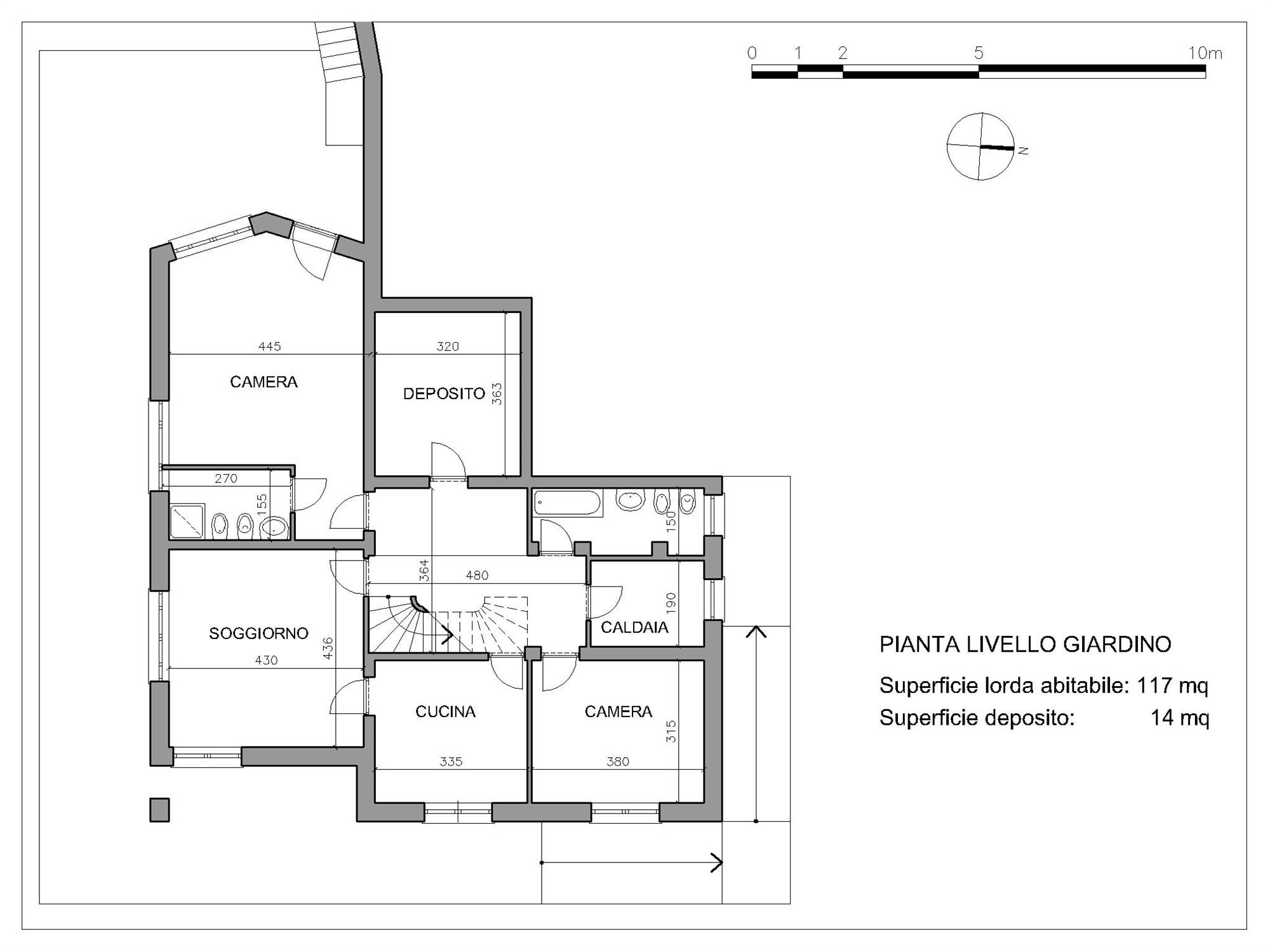 Una scala di collegamento interna raggiunge il piano situato a livello giardino, dove si trova un confortevole appartamento, avente accesso indipendente, per gli ospiti o il personale di servizio, suddiviso in soggiorno, cucina, camera, bagno, deposito e vano tecnico. Allo stesso livello è inoltre presente un’ampia camera con bagno annesso e accesso indipendente.