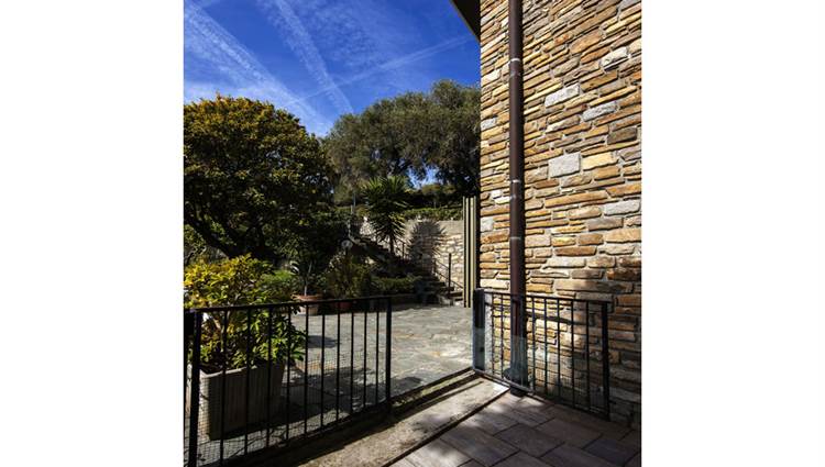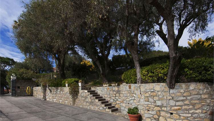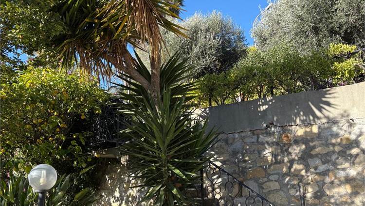 Il giardino circostante è di circa 1.600 mq e si sviluppa su terrazzamenti in pietra con piantumazione prevalentemente a ulivi e agrumi, con possibilità di realizzare la piscina.